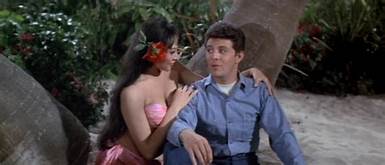 Meanwhile enter "Frankie" and "Dolores" singing. They're on the way to the beach house the gang has rented right next door to the "Professor" of course. The two will sing another song together and each has a solo number. Dick Dale and the Del Tones have two songs of their own.