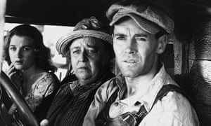 The Grapes of Wrath, you know is about us pullin' out of Oklahoma and Arkansas, and down south, and a driftin' around over state of California, busted, disgusted, down and out, and a lookin' for work.