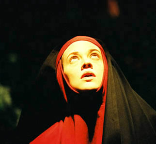In the French film, "Ginostra", shot in English, and starring Harvey Keitel and Andie MacDowell. Asia Argento had 13th billing as "The Nun". The actress is seen in a dream sequence in a red and purple as a volcano erupts. This is a very "Arty" Crime drama and it is extremely easy to become lost, because the small amount of dialogue is the audiences only clue to what's going on.